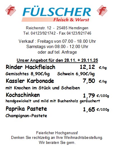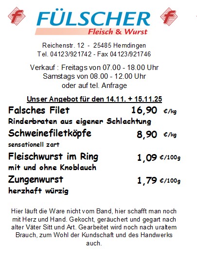 Willkommen bei Fülscher Fleisch und Wurst, Ihrem Fleischerfachgeschäft.